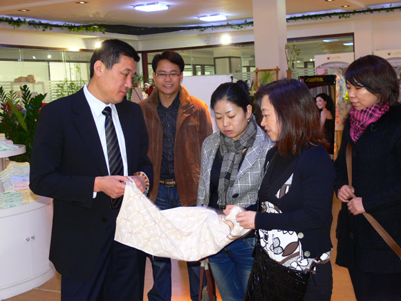 董事长王建中先生与日本著名家纺设计大师正木圭子女士就新产品研发问题进行沟通交流.
