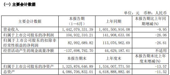8月19日,江山欧派发布半年度业绩报告,2024年上半年公司实现营业收入14.42亿元,同比下降9.95%;归属于上市公司股东的净利润1.05亿元,同比下降26.06%;归属于上市公司股东的扣除非经常性损益的净利润8299.27万元,同比下降26.61%。