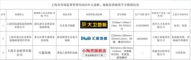 上海市市场监管局发布人造板、地板监督抽查情况,3批次不合格