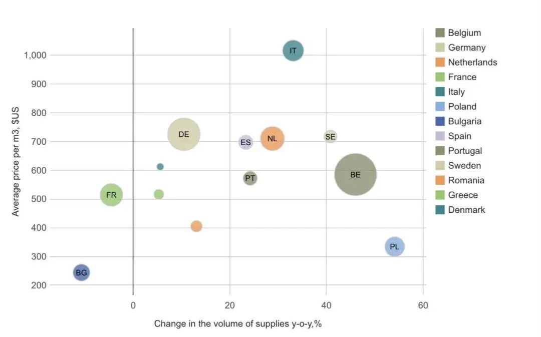 面对中国持续的房地产低迷,欧洲胶合板生产商已将重点转向出口市场,以弥补欧洲国内需求的疲软。胶合板出口的增长主要受到家具消费疲软的推动,而家具消费在很大程度上依赖于建筑活动。2024年1月至8月,中国硬木胶合板出口量增长了11%,达到624万立方米,出口额增长了7.2%,达到27亿美元,硬木胶合板的平均价格下降了3.4%,至每立方米436美元。