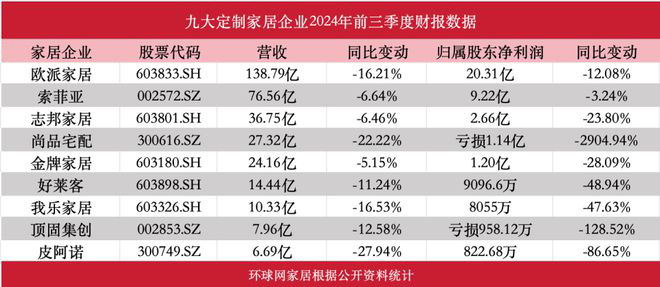 九大定制家居企业营收净利双双负增长
