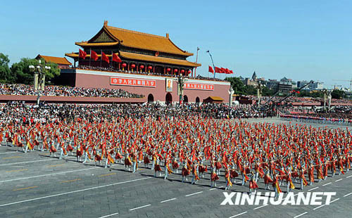 由梦狐公司加班加点,高品质生产出的60周年庆典演出服,在北京体育大学数百位优秀学员的精彩表演下,顺利通过天门广场,顺利通过国家领导人和人民的检阅。