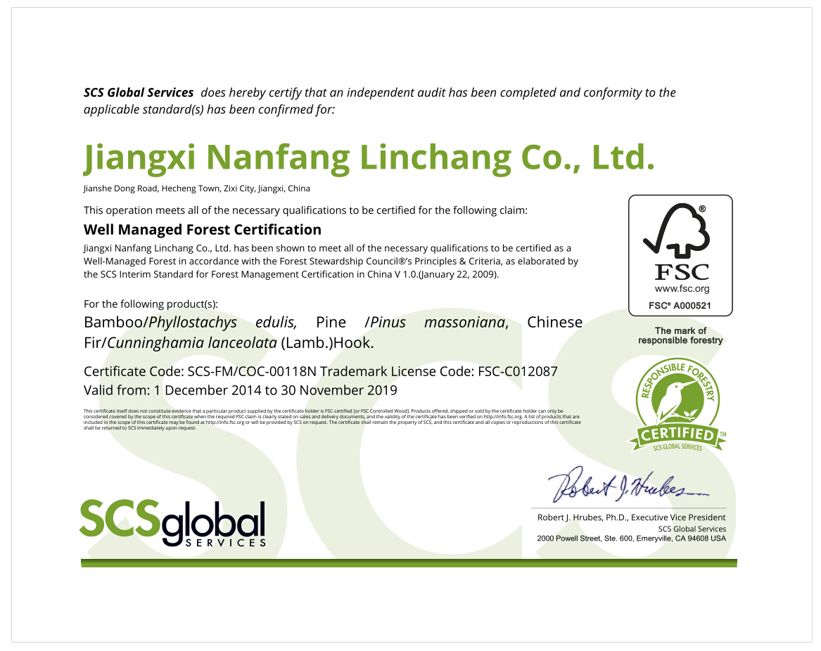 南方场早在2009年就通过FSC林场认证,当时成为江西省首家通过FSC森林经营认证的企业。几年来,公司加强林业管理,通林过不断的定期监测来控制森林经营的质量,满足世界对林产品的需求,提高林地生产力,与2014年底再次接受FSC森林认证的考察与审核,并通过FSC林场认证。江西南方林场有限公司将对林场持续管理与经营,充分发挥森林的社会和经济效益。