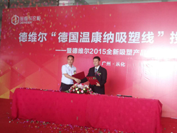 2015年7月7日,“中国整体衣柜十大品牌”德维尔“德国温康纳吸塑线”投产发布会暨2015全新吸塑产品鉴赏会,在广州从化明珠工业园德维尔国际化生产基地盛大举行,该司中国区销售总监朱长庆先生与德维尔殷董完成签约合作协议。