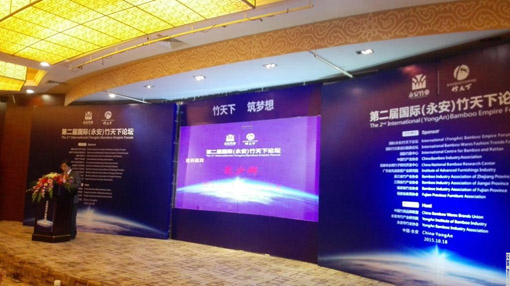 国家林业局科技司副司长杜纪山出席博览会开幕式,为“福建永安国家竹产业科技示范园区”授牌。国际竹藤中心科技处处长范少辉代表主办方分别在博览会开幕式和第二届国际(永安)竹天下发展论坛上致辞,并为第四届2015国际(永安)竹具设计大赛颁奖。